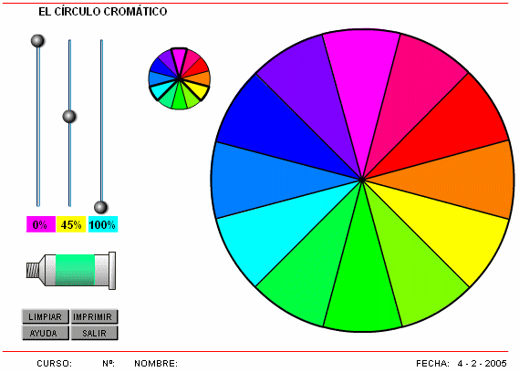 Una actividad típica para comprender como se consiguen todos los colores a partir de los colores primarios es elaborar un círculo cromático. Podemos trabajarlo con una simulación en Flash.