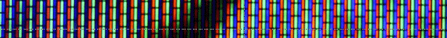 La siguiente imagen es una fotografía de la pantalla de la televisión. Podemos ver la variación de las intensidades de los tres colores primarios. Si nos alejamos podremos ver con mayor claridad qué colores forman. En las zonas oscuras vemos como las bandas de color están apagadas.