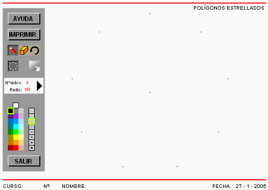 el programa comienza con 9 lados y 150 de radio. El valor máximo