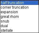 - half truncation corta las esquinas por el punto medio de las aristas.